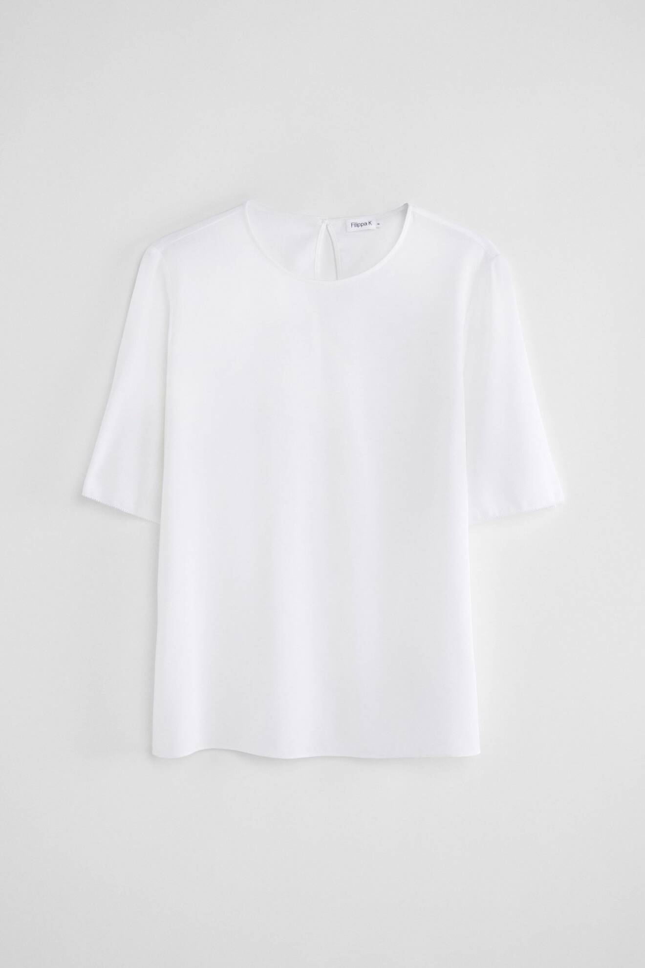 Här bär kronprinsessan vit knytblus, svart dräktjacka och svart kappa. En liknande outfit finner du nedan.