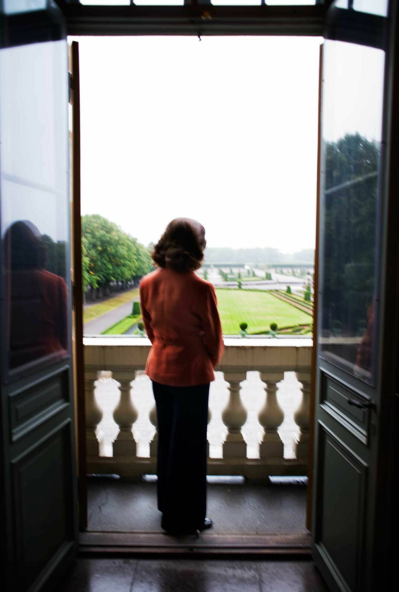 Här sitter drottning Silvia i sitt favoritrum på Drottningholm, en kunglig pastelldröm i bakelserosa och pistagegrönt. Från soffan har hon bästa Drottningholmsutsikten. Och det vackraste försommarljuset! Av den anledningen rycker detta rum också in som kungafamiljens sommarmatsal och vem kan motstå en sådan? Inte vi, och inte drottning Silvia!