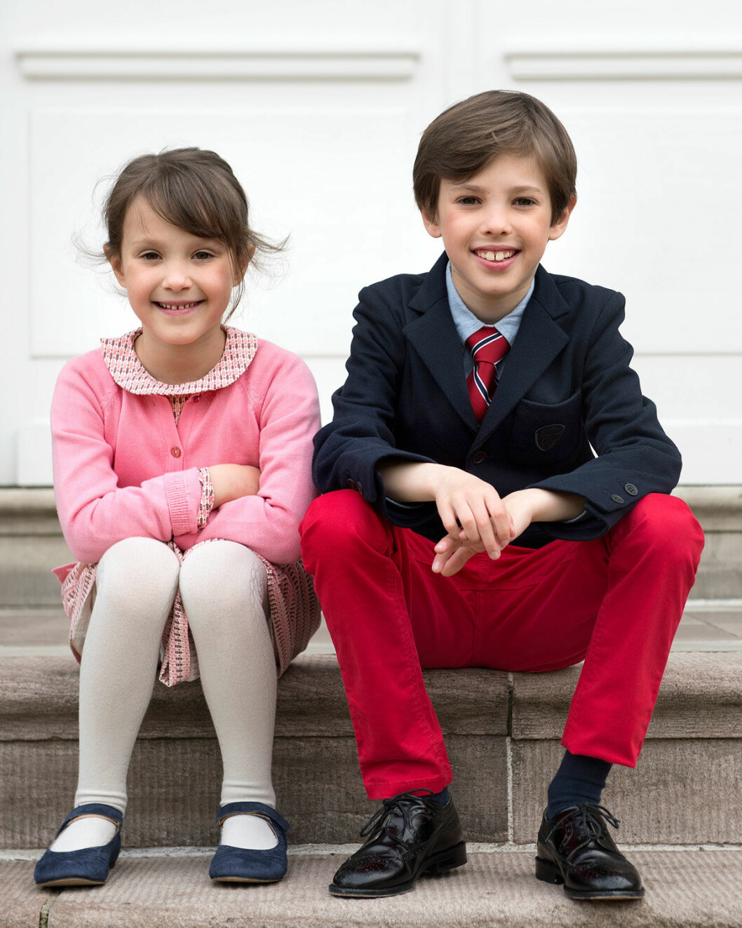På den andra bilden ser vi honom med lillasyster Athena, 6. Dagen till ära har Athena satt på sig en söt rosa klänning och stickad kofta. Bilderna är tagna av danska hovfotogragen Keld Navntoft.