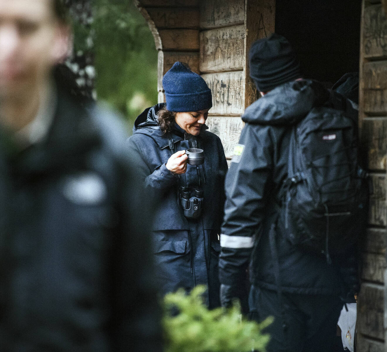 Kronprinsessan Victoria i Gysinge i dag. Varm och påpälsad och med kikaren i en rem runt halsen.