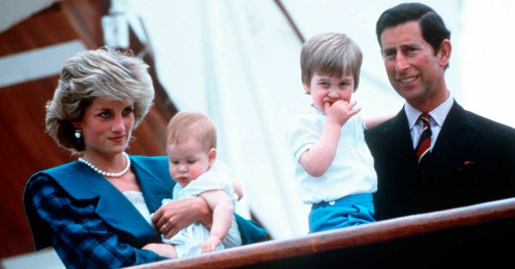 Prins Harry fick också följa med sin mamma prinsessan Diana och pappa prins Charles samt storebror prins William på en officiell resa utomlands när han var liten. Då gick resan till Italien och familjen ses här ombord på Royal Yacht Britannia år 1985.