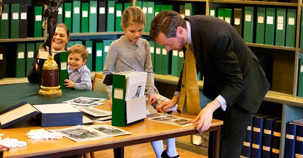 I hovets grattishälsning får vi veta att bilden fotades under februari på slottet, och det verkar vara från samma tillfälle som när Victoria, Estelle och Oscar besökte Kungliga Husgerådskammaren.