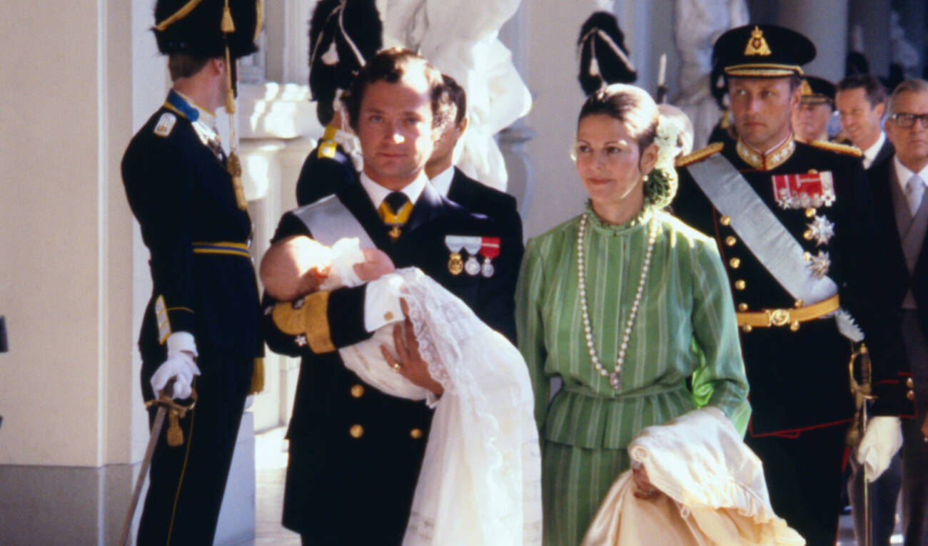 Kungen och drottningen med Victoria på kronprinsessans dopdag.