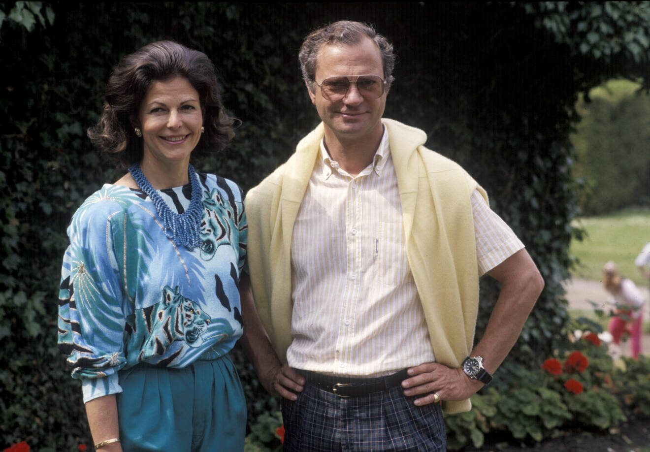 Här nedan ser vi kungaparet på Solliden sommaren 1988, i avslappnade men stilrena 80-tals outfits.